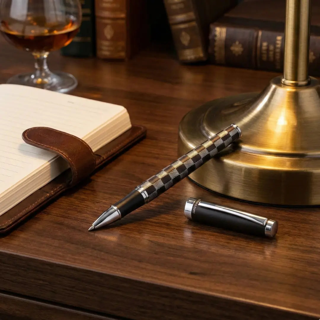 Picasso Parri Checkers Brown Roller Pen | Premium Customised Refillable Roller Ball Pen