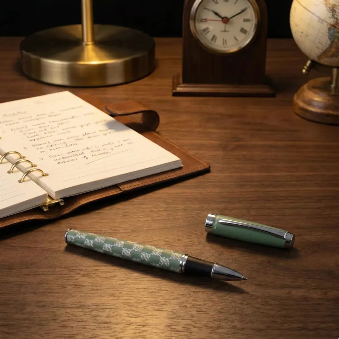 Picasso Parri Checkers Green Roller Pen | Premium Customised Refillable Roller Ball Pen