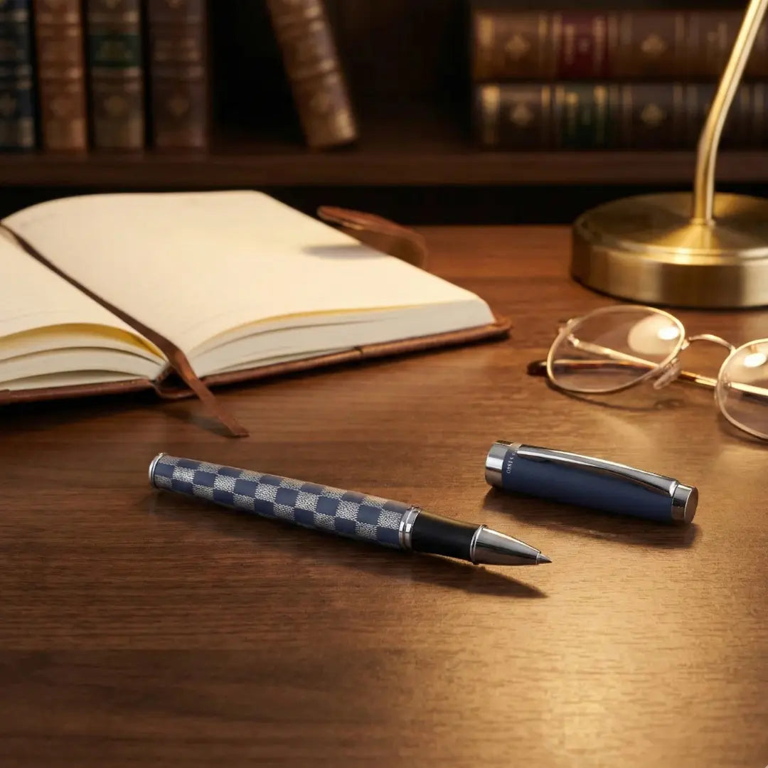 Picasso Parri Checkers Blue Roller Pen | Premium Customised Refillable Roller Ball Pen